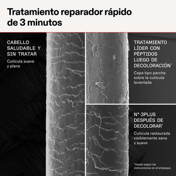 Transforma el cabello dañado en solo 3 minutos antes de usar shampoo con N°.3PLUS.